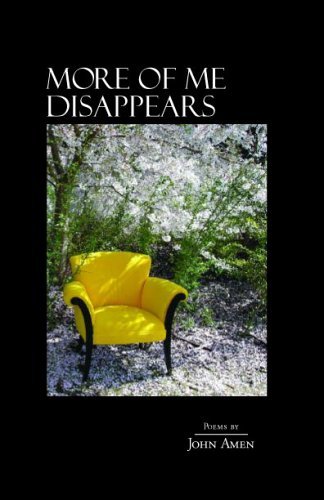 The title of the book, "More of Me Disappears," has, we feel, the sense of a desideratum or perhaps that of a prayer, and nowhere is the poet nearer his aim than in the poem containing the line from which the book takes its name, "Each day more of me disappears" (page 56), the one titled, "Vacillations," which, if pressed, I would declare my favorite. The two lines in the epigraph, "Tonight as always / There is no one to share my thoughts," by Chu Shu Chen, are more than just an epigraph; they seem like a pointer to where and to how is our poet's ME willing to disappear. John Amen's ME becomes that of a Chinese woman poet who lived almost a thousand years ago, and who wrote something perhaps approached to by this poor translation: "The shadows waving bamboos cast against my window, / The birds chatter in the sunset. / The time of crabapples and willow plumes is past, / Each languid summer day seems longer."